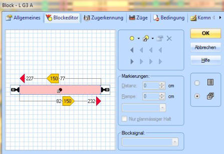 Fahrtrichtungen sind 3 Melder pro Block. An