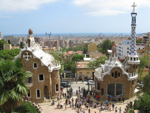 zum Bahnhof. Im Park Güell und später noch mal in